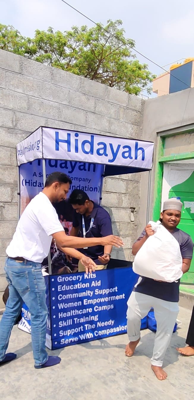 Hidayah Foundation is launching a dedicated campaign to provide essential grocery kits to economically struggling families who are facing financial hardship and food insecurity. Many families are struggling to meet their basic monthly food requirements due to unemployment, low income, or unexpected financial burdens. Through this initiative, we aim to provide carefully prepared grocery kits that contain essential food and household supplies required for monthly sustenance. Each grocery kit costs ₹1,450 and includes staple food items and essential household necessities required for a family's basic needs for one month. Our Goal We aim to support 100 families. Cost per kit: ₹1,450 Total families: 100 Total Fundraising Goal: ₹1,45,000 Sponsorship Options Sponsor 1 Kit – ₹1,450 Sponsor 2 Kits – ₹2,900 Sponsor 3 Kits – ₹4,350 Sponsor 5 Kits – ₹7,250 Every contribution directly supports families in need and ensures food security and dignity.