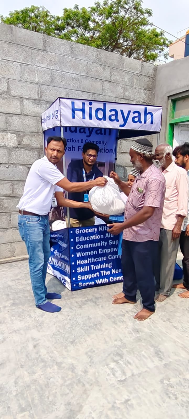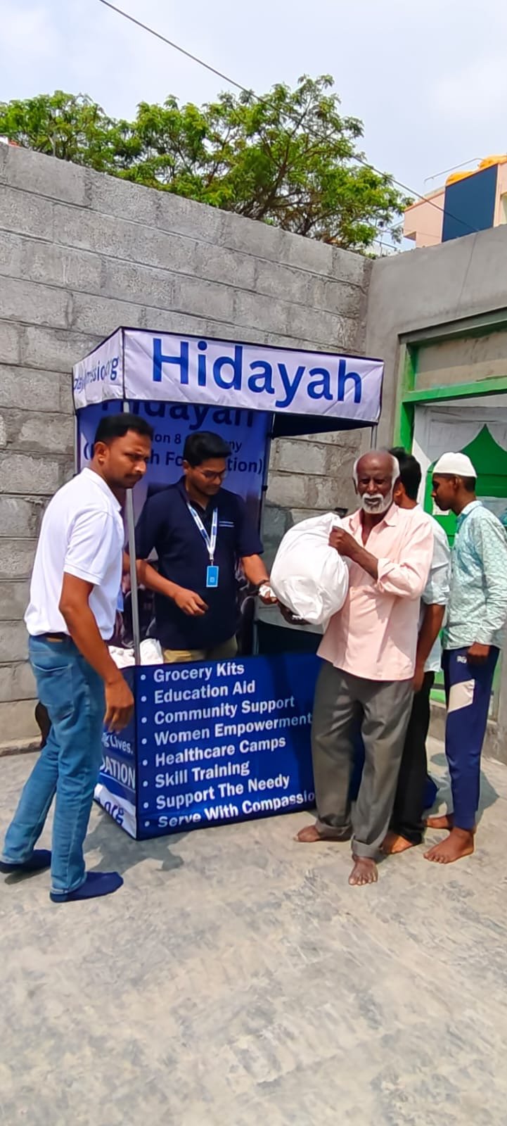 Hidayah Foundation is launching a dedicated campaign to provide essential grocery kits to economically struggling families who are facing financial hardship and food insecurity. Many families are struggling to meet their basic monthly food requirements due to unemployment, low income, or unexpected financial burdens. Through this initiative, we aim to provide carefully prepared grocery kits that contain essential food and household supplies required for monthly sustenance. Each grocery kit costs ₹1,450 and includes staple food items and essential household necessities required for a family's basic needs for one month. Our Goal We aim to support 100 families. Cost per kit: ₹1,450 Total families: 100 Total Fundraising Goal: ₹1,45,000 Sponsorship Options Sponsor 1 Kit – ₹1,450 Sponsor 2 Kits – ₹2,900 Sponsor 3 Kits – ₹4,350 Sponsor 5 Kits – ₹7,250 Every contribution directly supports families in need and ensures food security and dignity.